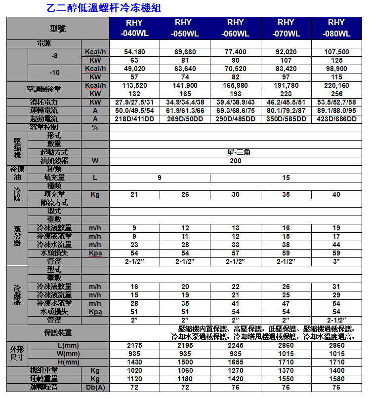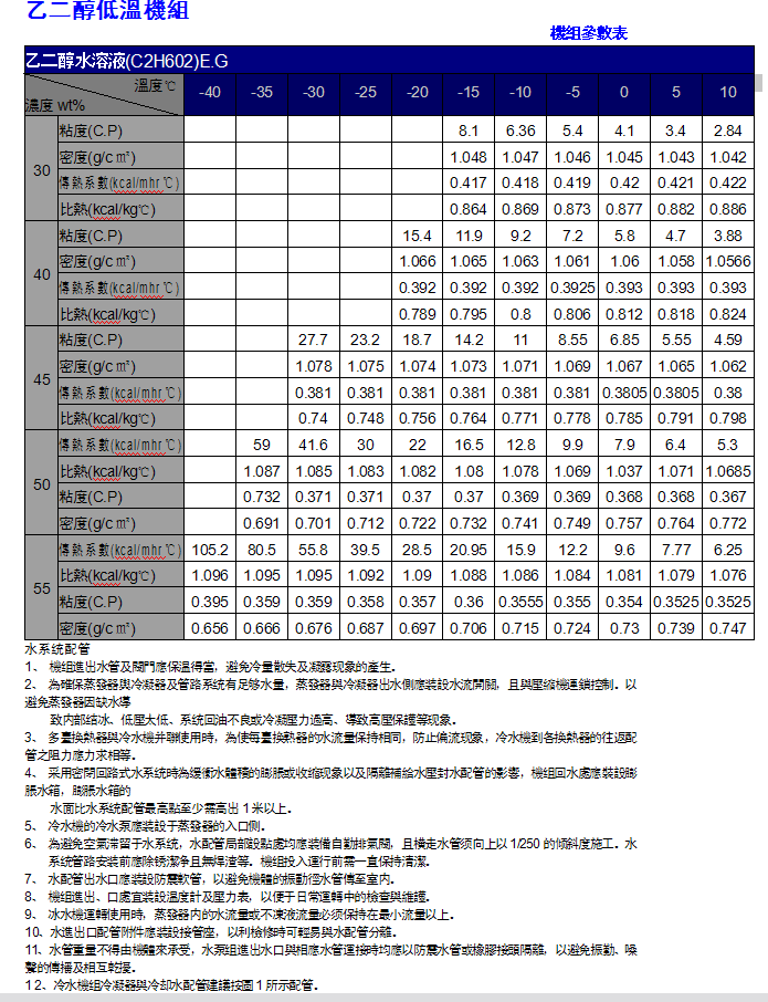 机组可提供0℃~-60℃的一定浓度的乙二醇水溶液低温载冷剂,也可选用多种载冷剂根据客户的需求可用CaCl2水溶液,乙二醇水溶液,三元混合溶液(40%的乙二醇,40%水,40%乙醇),R22,及其它经认可的载冷剂,也可将蒸发器按防腐要求设计,采用氯化钙水溶液为载冷剂,适用于各种有低温冷源要求的场所,如医药、化工行业的反应釜,大型冷库、饮料食品行业、酒业、溜冰场等。