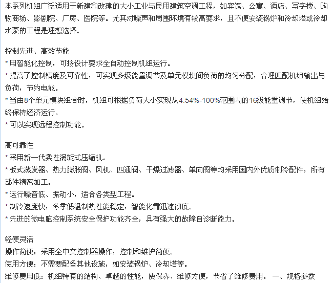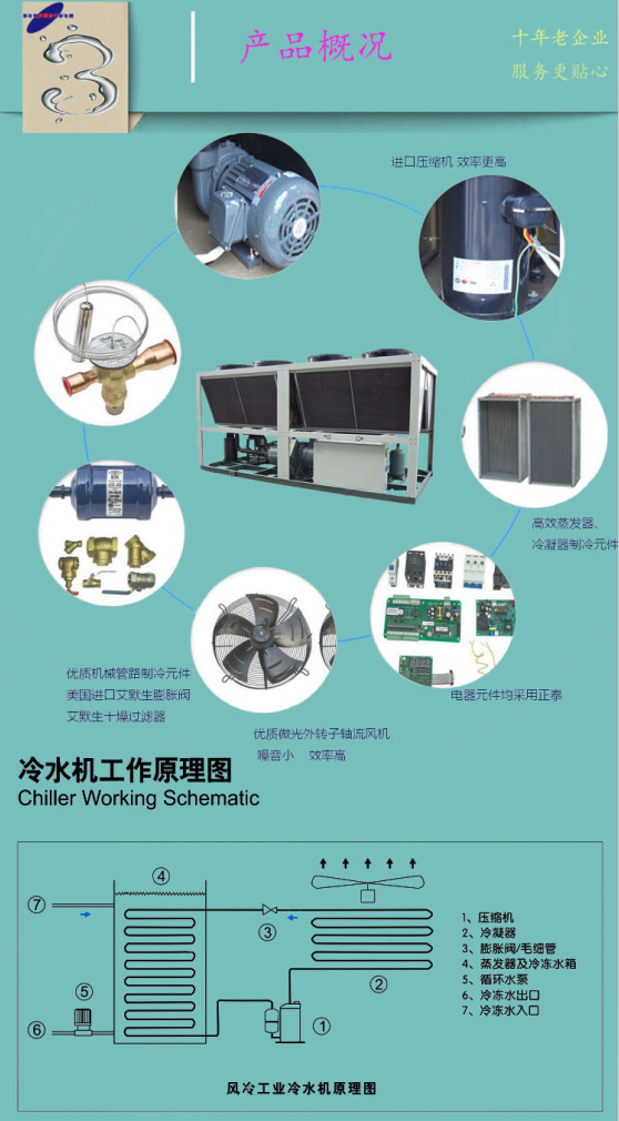 精选原装进口名牌全密闭往复式和半密闭往复式压缩机。性能好、噪音低。根据客户需要和冷吨位大小,采用单机或多机组合。压缩机可依负载变化,自动交替运转,平衡各压缩机的运行时数,大大延长了冰水机组的使用期限。