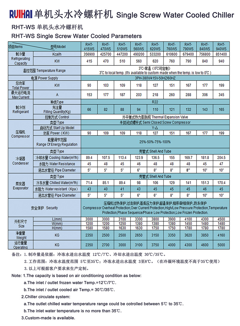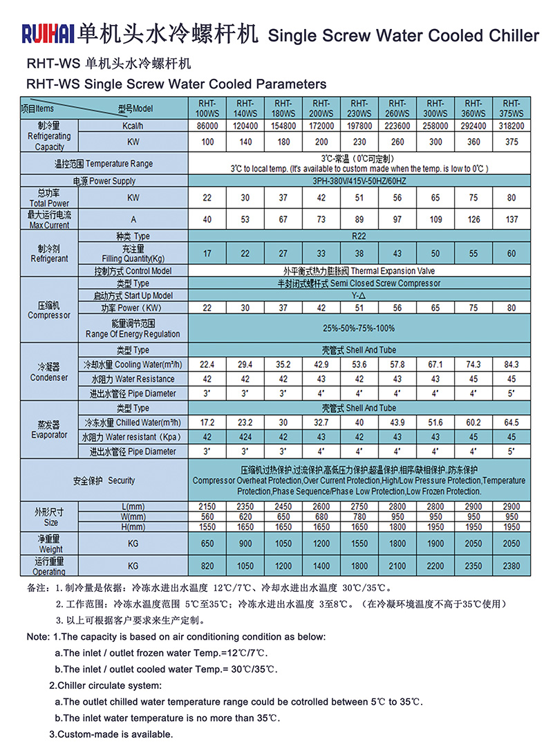 3,冷水机冷凝器采用水冷却方式,可在各种系统上使用,不受环境温度限制,性能稳定,维修方便。
