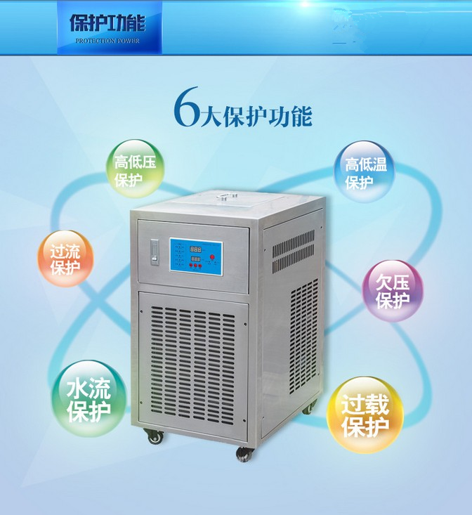 7、带有流量欠流及水温过高或过低报警输出给外部设备,水箱低水位报警众多报警以保护用户设备及制冷机组的正常运行。