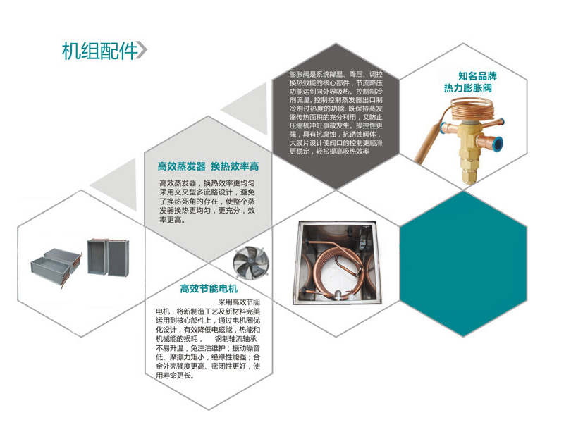 1,全新进口压缩机和高效冷凝器、蒸发器组合,