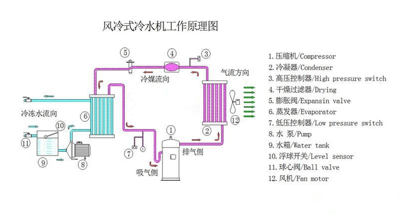 不用配备冷却塔,避免安装散热水系统带来的麻烦,中小型可移动风冷式冷水机,可方便地安装在所需场合。广泛应用于塑胶,电镀,电子,化工,超声波清洗等各行各业。